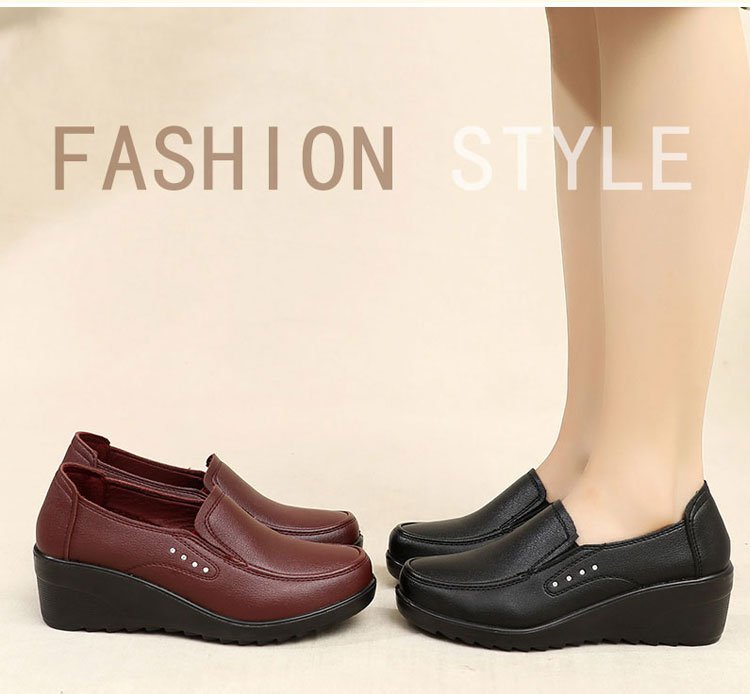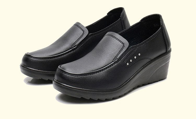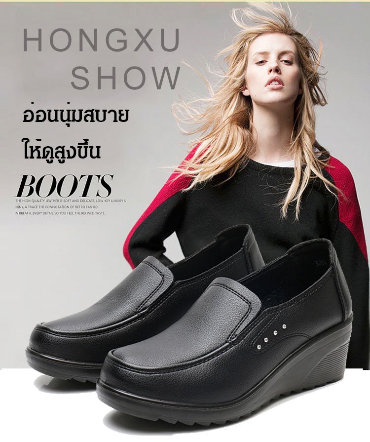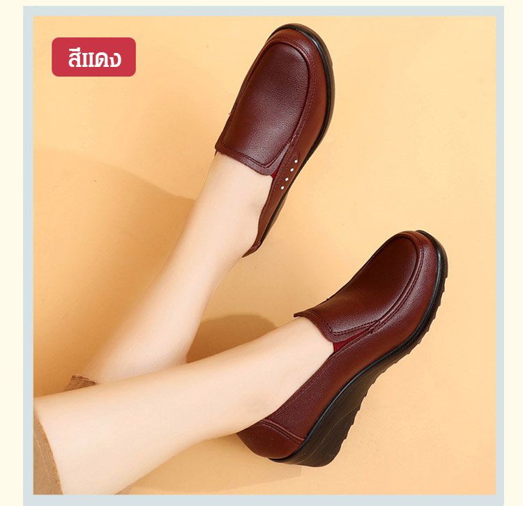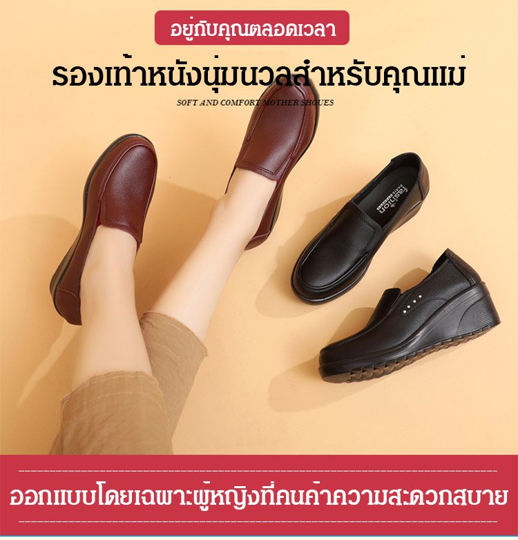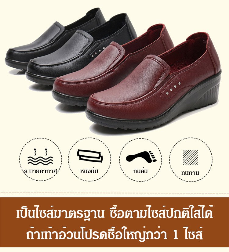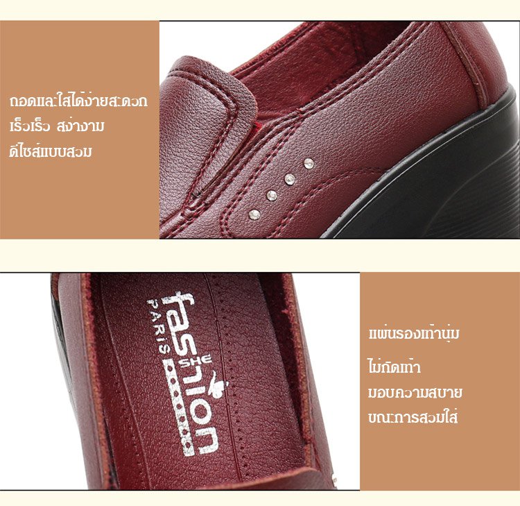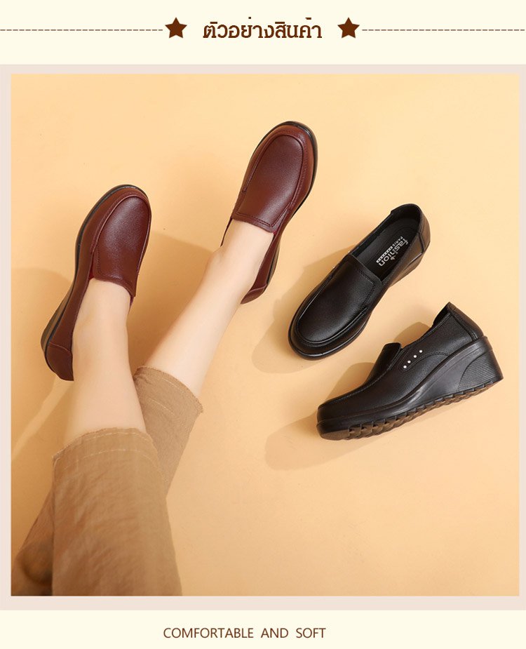 รองเท้าหนังวัวส้นเตารีดแบบสลิปออน